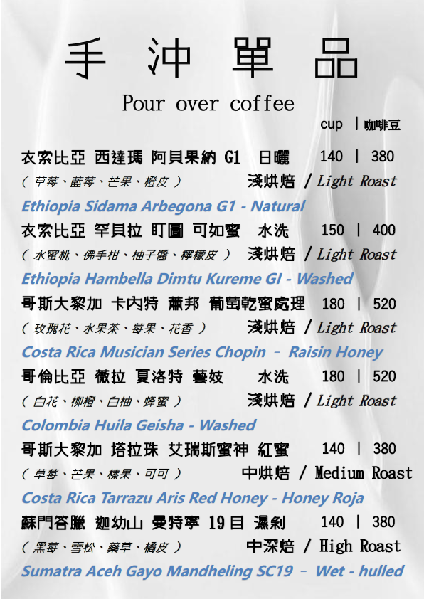 【中焙 / Medium Roast】【水洗 / Washed】 黑莓、烏梅、雪松、巧克力,每杯約300ml