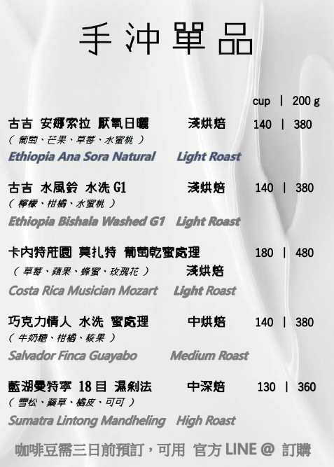 精選莊園豆不定時更新,採用低溫冷萃發酵,口感輕盈、味道豐富並帶有甘甜